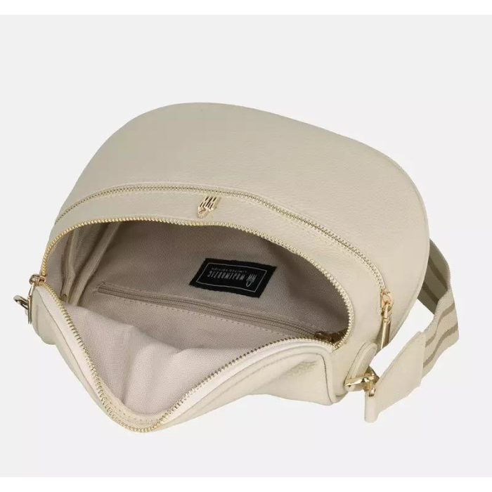 Vďaka praktickému vnútornému priestoru ponúka dostatok miesta na všetky každodenné nevyhnutnosti. Hlavná priehradka je doplnená o menšie vrecká na zips, ktoré pomáhajú udržať mobil, peňaženku a drobnosti prehľadne usporiadané.