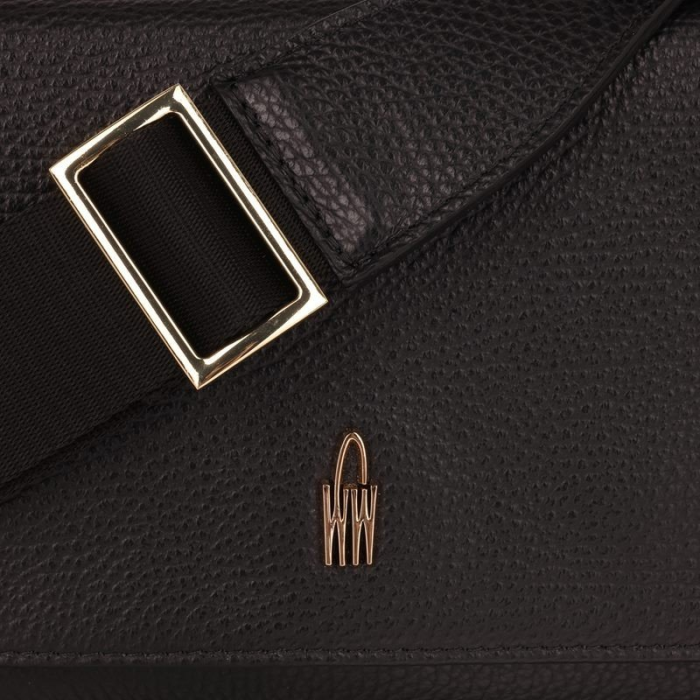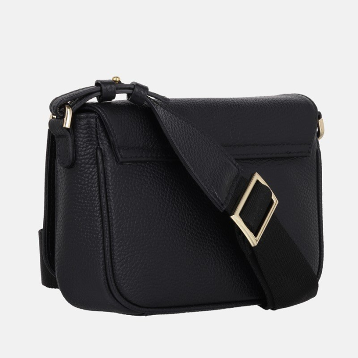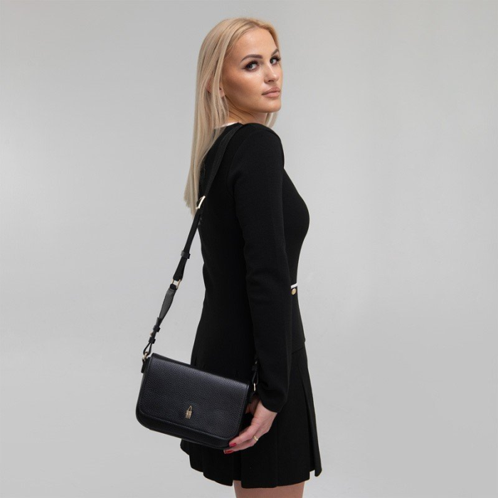 Nastaviteľný popruh (max. 130 cm) umožňuje flexibilné nosenie podľa potreby. Zlaté kovanie v kontraste s čiernou kožou dodáva kabelke elegantný a mierne luxusný charakter.