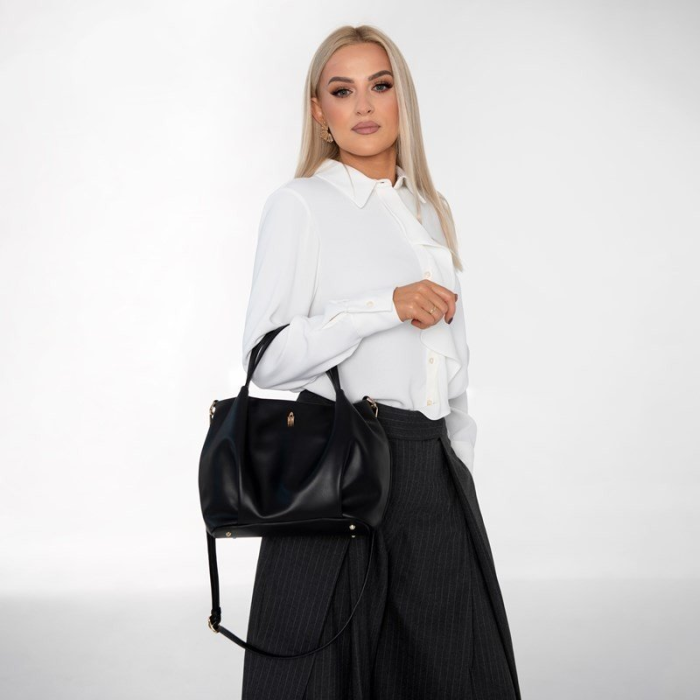 Vďaka kompaktným rozmerom je kabelka strednej veľkosti a ideálna do práce, na stretnutia aj voľnočasové aktivity. Formát A4 sa do nej nezmestí, čo z nej robí elegantný, nadčasový doplnok, nie typický „shopper“ model.