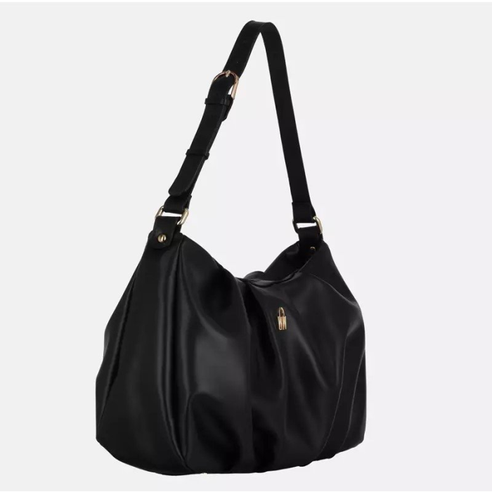 Stredne veľká dámska čierna kožená kabelka z hladkej pravej kože je elegantný a zároveň praktický model, ktorý patrí medzi výrazné trendy tejto sezóny. Moderný, čistý tvar pôsobí nadčasovo a ľahko sa kombinuje s každodenným aj elegantným outfitom.