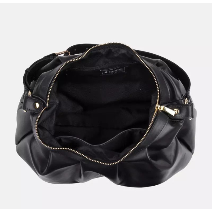 Dámska čierna kožená kabelka Wojewodzic – moderný tvar, zlaté kovanie