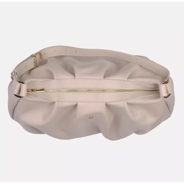 Dámska svetlá béžová kožená kabelka Wojewodzic z pravej hladkej kože v elegantnom mäkčenom tvare. Jemný, veľmi svetlý béžový až krémový odtieň pôsobí čisto a nadčasovo. Zlaté kovanie a praktické vnútorné usporiadanie robia z kabelky ideálny doplnok na každodenné nosenie.