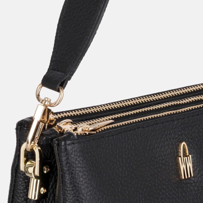 Kvalitná čierna kabelka z pravej talianskej kože, ktorá si zachová svoj vzhľad aj pri každodennom nosení. Praktická, odolná a ideálna na každý deň.