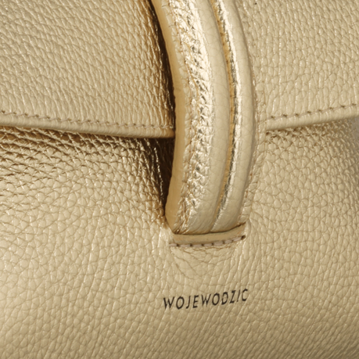 Podrobný popis produktu - Zlatá metalická kožená kabelka z hrudkovitej kože je výrazný doplnok, ktorý dodáva outfitu luxusný a sofistikovaný charakter. Metalický zlatý odtieň odráža svetlo a vytvára elegantný efekt, ktorý je ideálny pre večerné a spoločenské príležitosti.